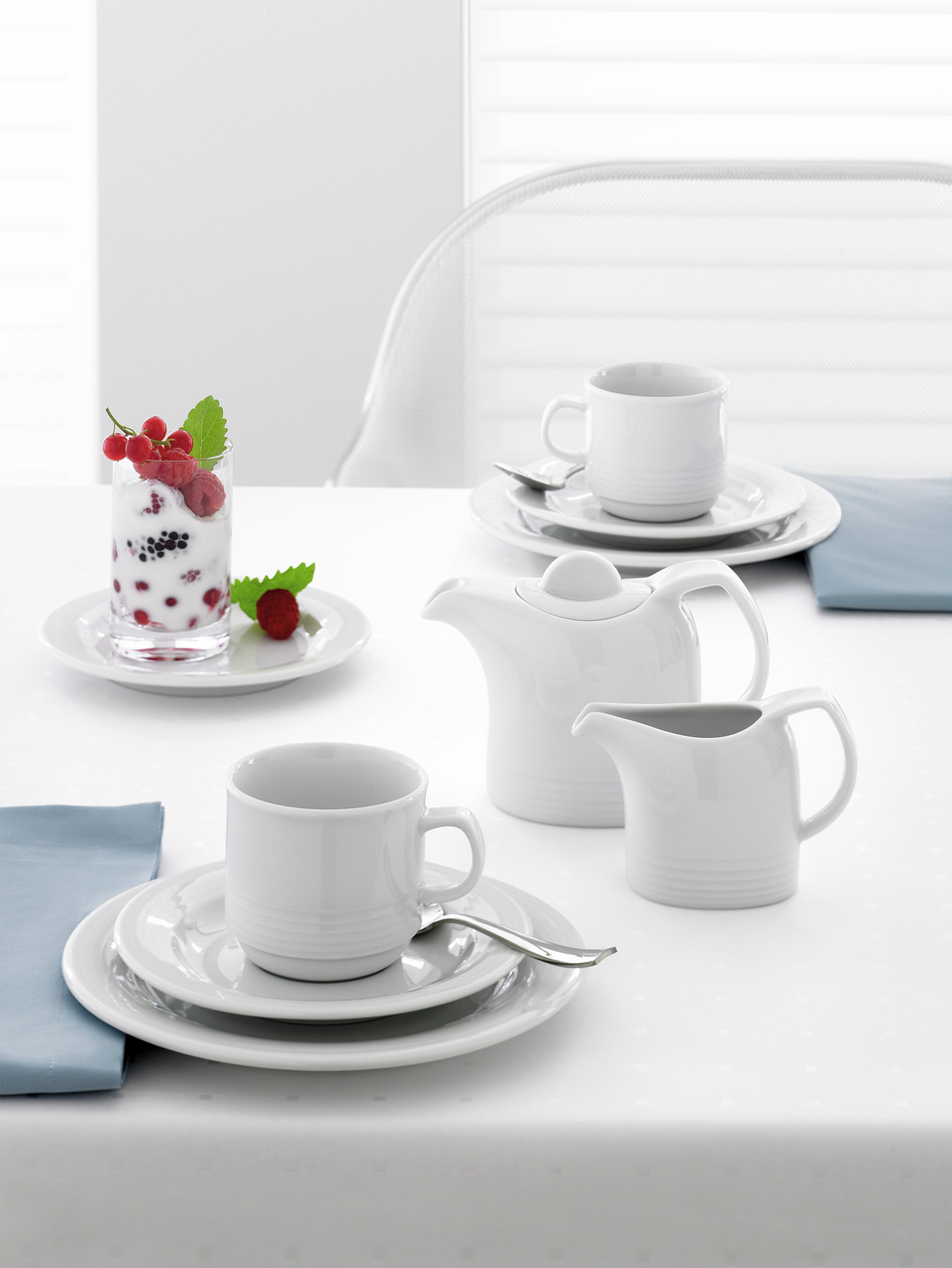 Dialog übersetzt Gastlichkeit in zeitloses Design. Die Kollektion verknüpft eine klare Formgebung mit hochpraktikabler Funktion und einem anmutigen, grafischen Linienrelief. Mit dieser gelungenen Symbiose steht Dialog seit Jahren in der Beliebtheitsskala im Kranken-, Pflege- und Seniorenbereich auf dem ersten Platz.